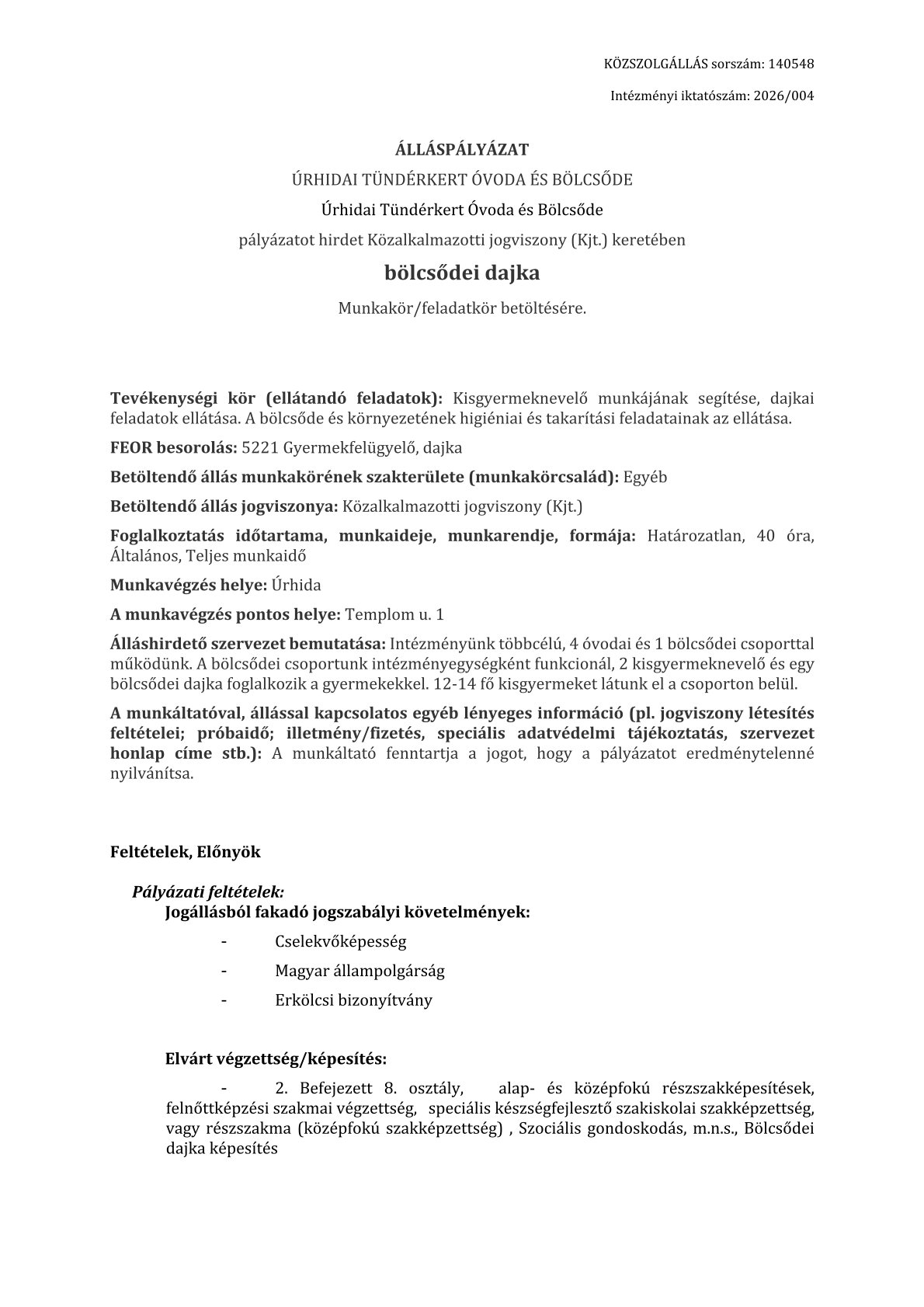 Várunk mindenkit szerettettel aki megfelel a követelményeknek és szeretne egy szuper óvodában dolgozni!