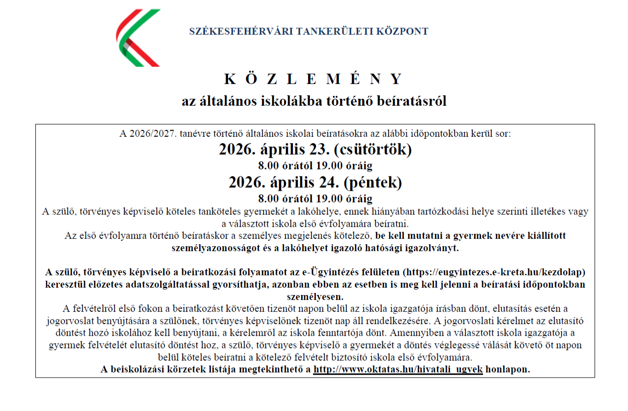 Értesítés óvodai beiratkozás változásáról 2020 jó